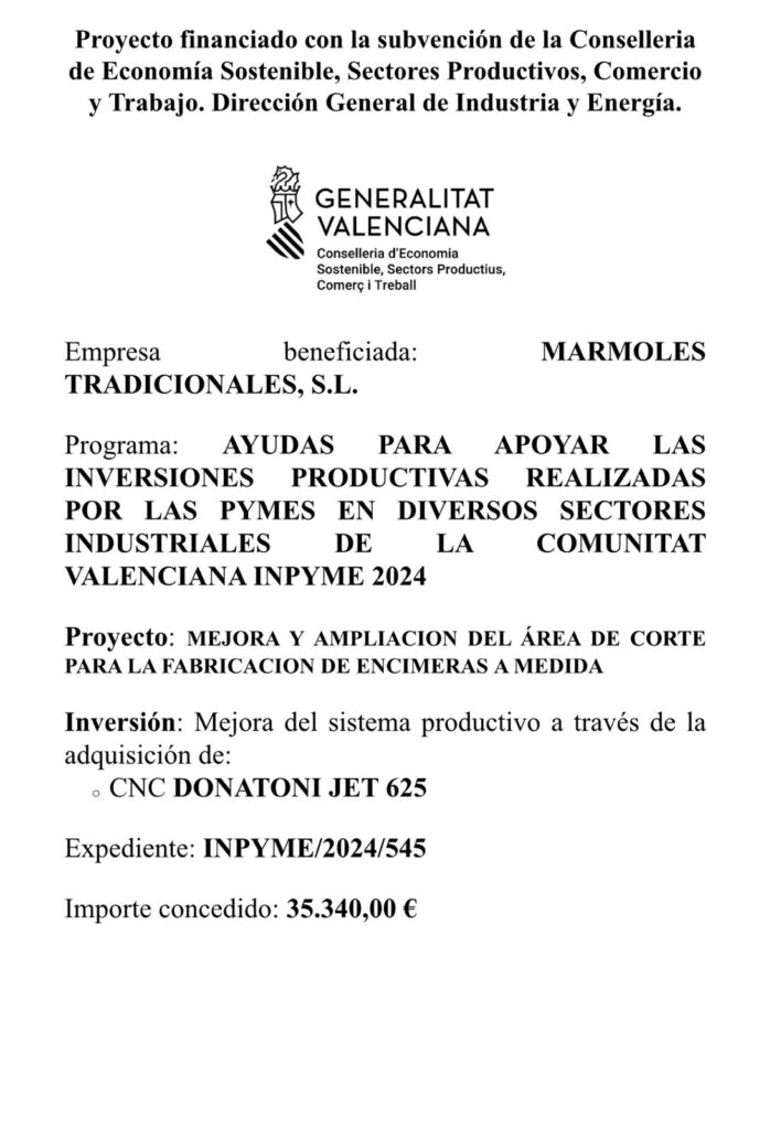 Proyecto: MEJORAS Y AMPLIACIÓN DEL ÁREA DE CORTE PARA LA FABRICACIÓN DE ENCIMERAS A MEDIDA